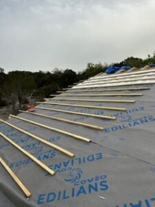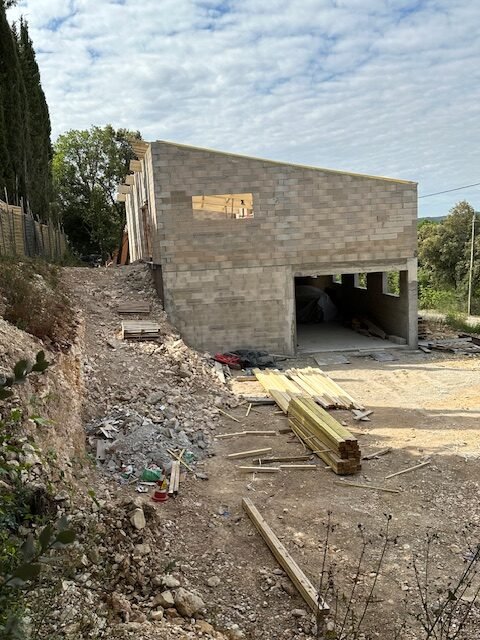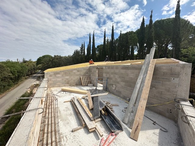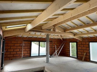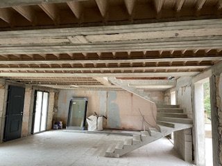 Ce projet a consisté en une extension avec surélévation totale du bâti existant. La toiture d’origine a été entièrement déposée afin de permettre la création d’un chaînage et l’élévation d’un nouveau niveau au-dessus de la structure existante.