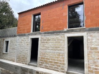 Une extension a été créée sur le côté gauche, construite dans le respect de l’existant, en réutilisant la pierre du site et des joints à la chaux pour une parfaite intégration architecturale.
