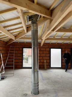 L’intérieur a été entièrement démoli puis repensé, avec la création d’un nouveau plancher, d’un escalier et d’une distribution optimisée des espaces. Une nouvelle charpente a également été réalisée pour accompagner cette transformation.