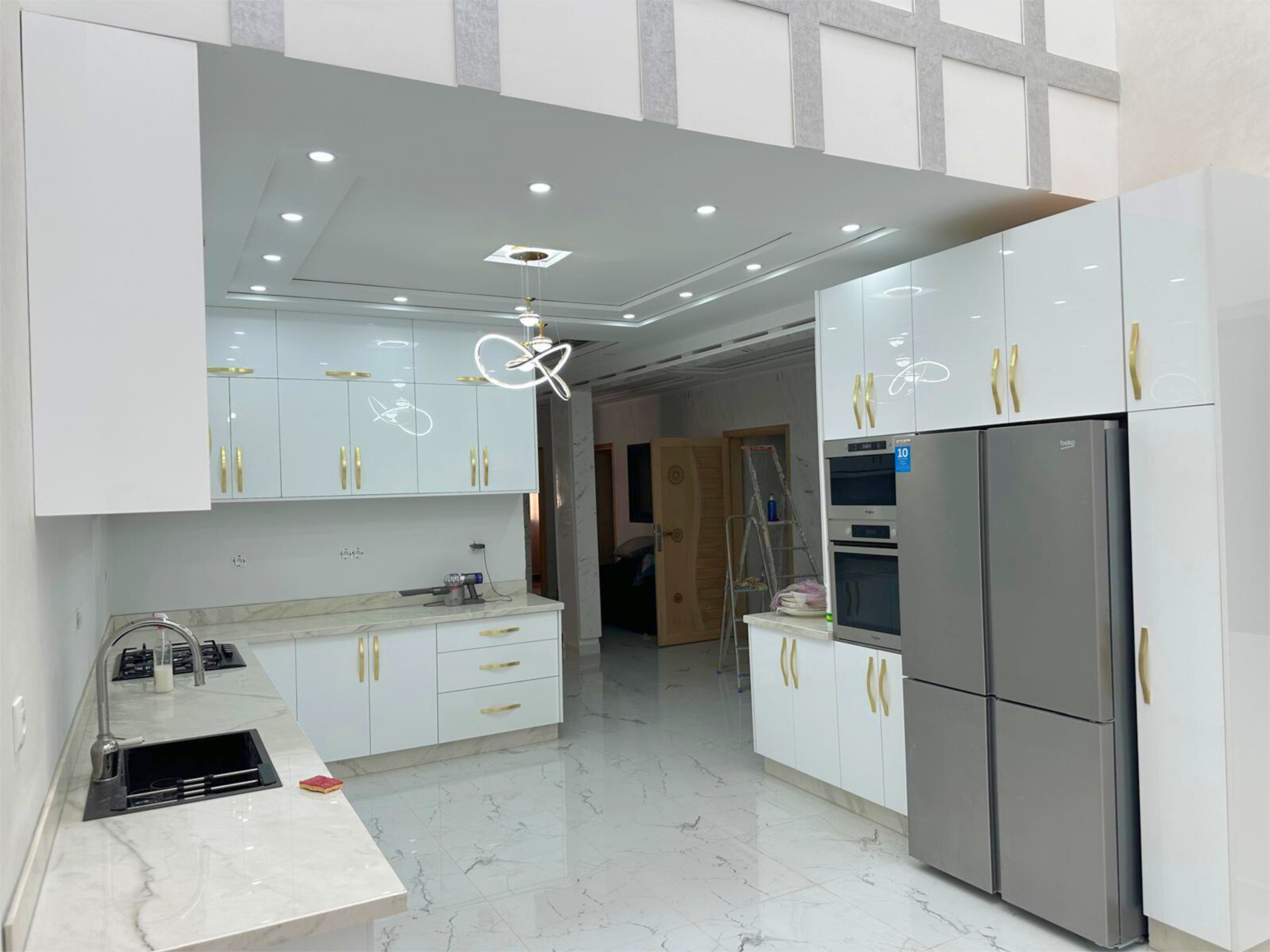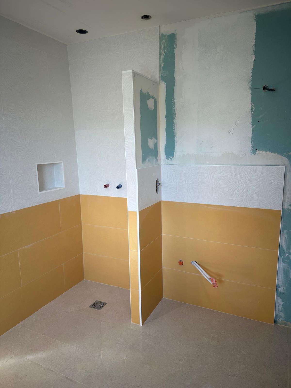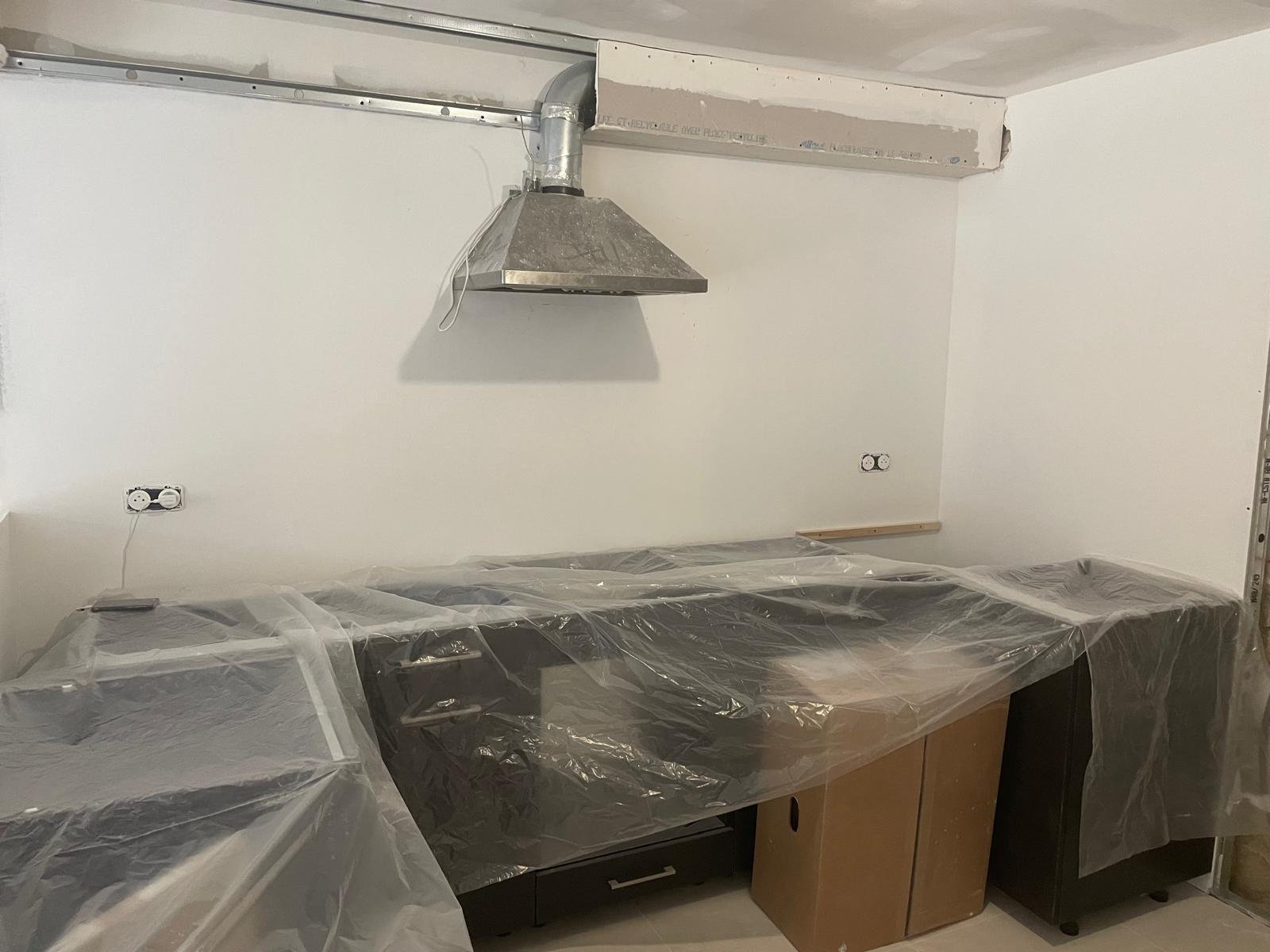 Les travaux se sont poursuivis avec l’aménagement intérieur en plaques de plâtre ainsi que la réalisation des finitions extérieures, incluant un béton balayé pour un rendu moderne et durable.