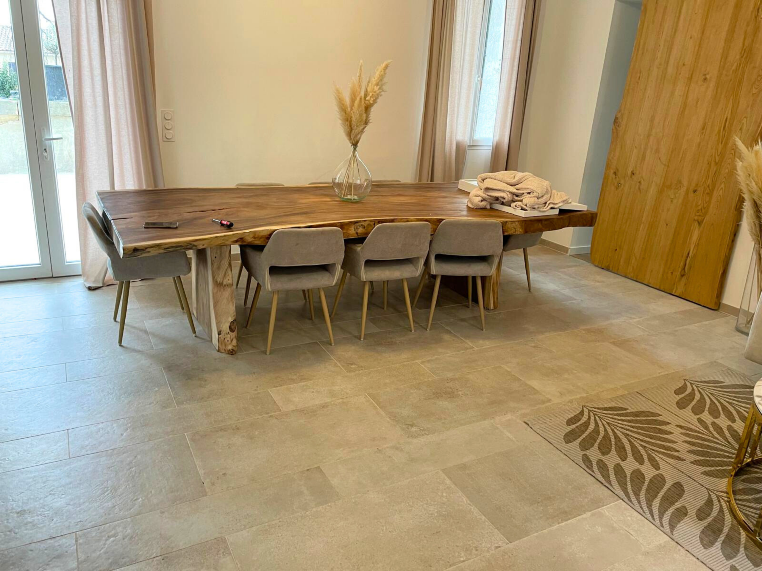 Une large ouverture en demi-cercle a également été réalisée, nécessitant une étude béton spécifique pour garantir la solidité de l’ouvrage. De nouvelles fenêtres ont été ajoutées et reproduites à l’identique, avec une reprise soignée des encadrements de portes.